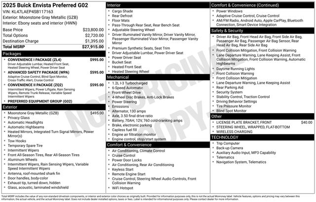 2025 Buick Envista Preferred FWD ECOTEC 1.2L Turbo Moonstone Gray Metallic Certified.