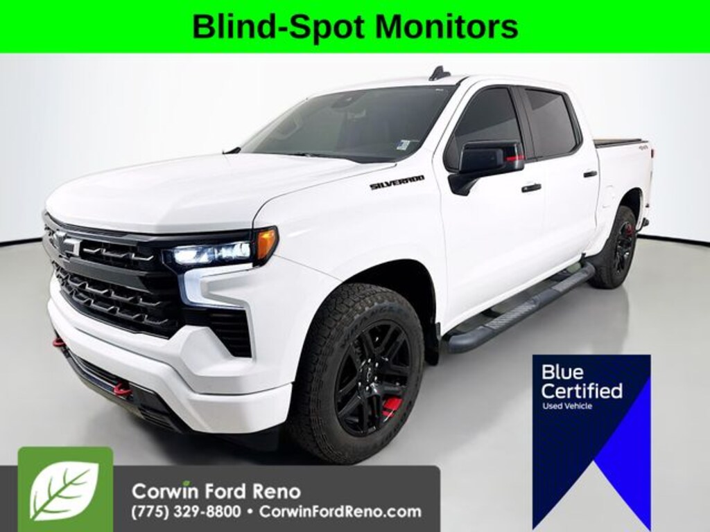 This Chevrolet Silverado 1500 is well equipped and includes these key features and benefits, Four Wheel Drive, Heated Seats, Blind-Spot Monitors, Lane Keeping Assist, Touchscreen Controls, Backup Camera, Keyless Access with Push Button Start, Drowsiness Alert, Automatic Headlights, Apple CarPlay, Android Auto, Low Miles, 10-Way Power Driver Seat w/Lumbar, 12.3" Multicolor Reconfigurable Digital Display, 120-Volt Instrument Panel Power Outlet, 4" Black Round Assist Steps (LPO), 6-Speaker Audio System, All-Star Edition, Auto-Locking Rear Differential, Bluetooth® For Phone, Chevytec Spray-On Black Bedliner, Color-Keyed Carpeting Floor Covering, Compass, Convenience Package, Deep-Tinted Glass, Dual Exhaust w/Black Exhaust Tips, Dual Rear USB Ports (Charge Only), Dual-Zone Automatic Climate Control, Electric Rear-Window Defogger, Electrical Steering Column Lock, Electronic Cruise Control, EZ Lift Power Lock & Release Tailgate, Front Frame-Mounted Black Recovery Hooks, Front LED Fog Lamps, Front Rubberized Vinyl Floor Mats, HD Rear Vision Camera, Heated Driver & Front Outboard Passenger Seats, Heated Power-Adjustable Outside Mirrors, Heated Steering Wheel, High Capacity Suspension Package, High Gloss Black Door Handles, High Gloss Black Grille, High Gloss Black Mirror Caps, Inside Rear-View Mirror w/Tilt, Keyless Open & Start, LED Cargo Area Lighting, OnStar & Chevrolet Connected Services Capable, Panic alarm, Performance Red Recovery Hooks, Power Front Windows w/Driver Express Up/Down, Power Front Windows w/Passenger Express Down, Power Rear Windows w/Express Down, Preferred Equipment Group 1SP, Protection Package, Rear 60/40 Folding Bench Seat (Folds Up), Rear Rubberized-Vinyl Floor Mats, Rear Wheelhouse Liners, Redline Edition, Remote Vehicle Starter System, SiriusXM w/360L, Standard Tailgate, Steering Wheel Audio Controls, Theft Deterrent System (Unauthorized Entry), Trailering Package, Wheels: 20" x 9" High Gloss Black Painted Aluminum, Wireless Phone Projection, Wrapped Steering Wheel. Priced below KBB Fair Purchase Price! Available at Corwin Ford Reno located at 11111 South Virginia St.
