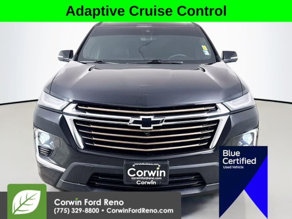 Recent Arrival! This Chevrolet Traverse is well equipped and includes these key features and benefits, All Wheel Drive, Adaptive Cruise Control, Heated and Cooled Seats, Panoramic Moonroof, 360 degree Camera, Heated Seats, Blind-Spot Monitors, Lane Keeping Assist, Navigation System, Touchscreen Controls, Backup Camera, Keyless Access with Push Button Start, Automatic Headlights, Apple CarPlay, Android Auto, Voice Recognition, Bluetooth Hands-Free, Third Row Seats, Collision Warning System, Front License Plate Bracket Mounting Package, Heated 2nd Row Outboard Position Seats, Navigation System, Power moonroof: Dual SkyScape, Preferred Equipment Group 2LZ. CARFAX One-Owner. Priced below KBB Fair Purchase Price! Available at Corwin Ford Reno located at 11111 South Virginia St.