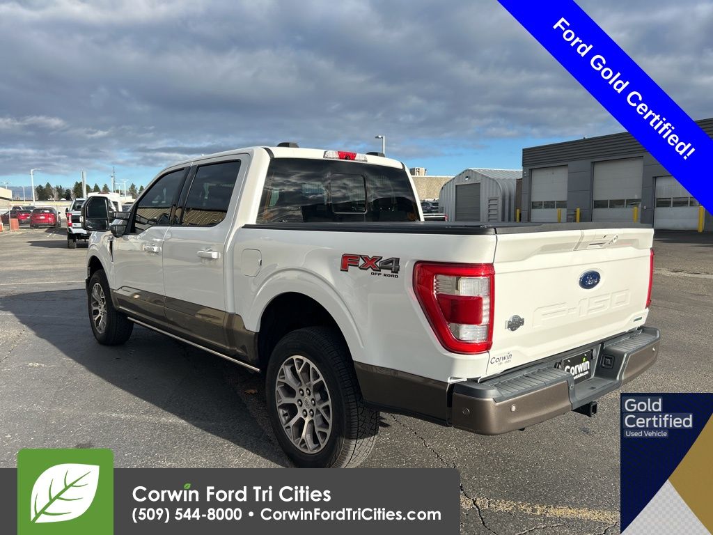 Our fantastic, Accident Free, One Owner, Certified Pre-Owned 2022 Ford F-150 King Ranch SuperCrew 4X4 with the FX4 Off-Road and Max Trailer Tow Packages is a truck you can be proud to own in Star White Metallic Tri-Coat! Powered by a Twin-TurboCharged 3.5 Liter EcoBoost V6 generating 400hp matched to a 10 Speed SelectShift Automatic transmission. Our Four Wheel Drive truck is a premium towing and trail-riding machine with that kind of muscle, and it can also score nearly 23mpg on the highway. The exclusive King Ranch style compels your attention with LED lighting, a twin panel sunroof, power running boards, fog lamps, two-tone paint treatment, and alloy wheels, plus additional LEDs for cargo-box lighting and the spotlights on the heated power-folding mirrors.