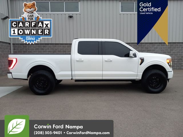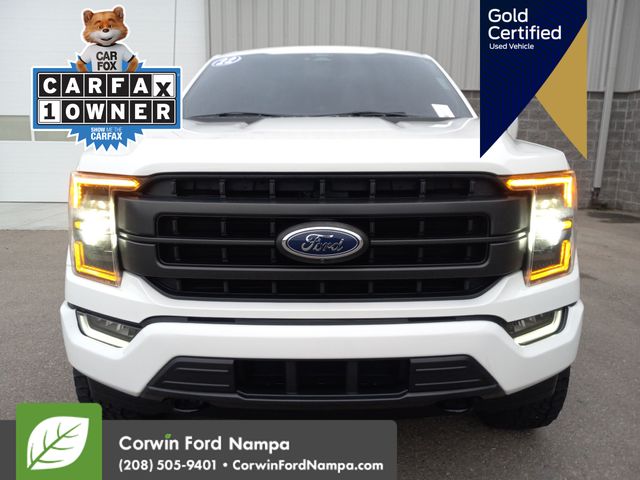 Our impressive Certified, Accident Free 2022 Ford F-150 Lariat SuperCrew 4X4 in Star White Metallic Tri-Coat has been rigorously tested, so it treats you right! Motivated by a Twin-TurboCharged 3.5 Liter EcoBoost V6 offering 400hp paired to a 10 Speed SelectShift Automatic transmission for torque-friendly towing and hauling. This Four Wheel Drive truck also returns nearly 23mpg on the highway. It shows off a proud and purposeful design with LED lighting, fog lamps, chrome bumpers, heated power-folding mirrors, a spray-on bedliner, tonneau cover, bold alloy wheels, and a high-strength bed with the BoxLink cargo-management system. With those features, you can make an impression on the town and the job site!