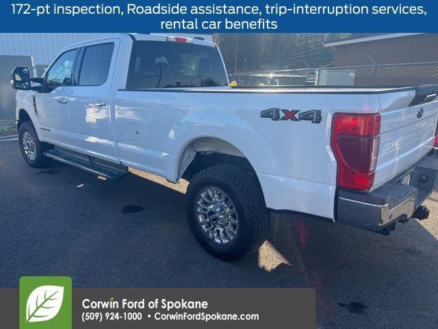 Drive our One Owner, Diesel-powered 2022 Ford F-350 XLT Crew Cab 4X4 with the Premium Package in Oxford White and make your next move with confidence! Motivated by a TurboCharged 6.7 Liter PowerStroke Diesel V8 supplying 470hp and 1050lb-ft of torque connected to a 10 Speed Automatic transmission for work-friendly capability. This Four Wheel Drive truck is also impressively maneuverable, plus it shows off bold Ford style with the Premium Pack's 6-inch step bars, fog lights, chrome steel bumpers, bright chrome grille bars, quad dual-beam headlights, heated power mirrors, front tow hooks, a power locking tailgate, and alloy wheels.