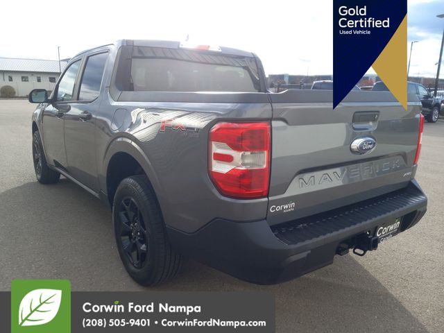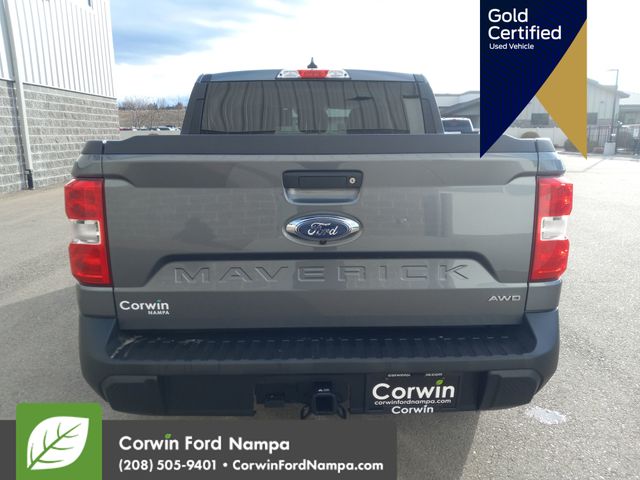 Our Certified, Accident Free, One Owner 2022 Ford Maverick XLT SuperCrew AWD with the FX4 Off-Road Pack is a trendsetting truck that's ready to take on your world in Carbonized Gray! Motivated by a TurboCharged 2.0 Liter EcoBoost 4 Cylinder providing 250hp paired to an 8 Speed Automatic transmission. As a result, this All Wheel Drive truck has impressive ratings for its towing, payload, and fuel efficiency, seeing nearly 29mpg on the highway. Our Maverick makes a bold impression with LED lighting, power mirrors, a power locking tailgate, a SecuriCode keypad, and the style and substance of our package. It bundles exclusive alloy wheels, hill descent control, front tow hooks, a bold box decal, skid plates, enhanced terrain modes, and a trailer hitch with a four-pin connector.