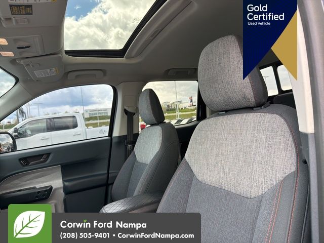 Our Certified, Accident Free with Low Mileage 2022 Ford Maverick XLT SuperCrew is a trendsetting truck that's ready to take on your world in Shadow Black! Motivated by a 2.5 Liter 4 Cylinder and an Electric Motor providing a combined 191hp paired to a CVT that's as capable as it is efficient. As a result, this Front Wheel Drive truck has impressive ratings for its towing, payload, and fuel efficiency, highlighted by a score of nearly 40mpg in the city. Our Maverick also makes a bold impression with LED lighting, power mirrors, a sunroof, a tonneau cover, a power locking tailgate, a SecuriCode keypad, and eye-catching alloy wheels.