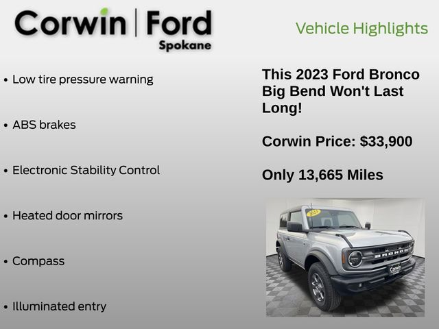 2023 Ford Bronco Big Bend 4WD 2.3L EcoBoost I-4 Iconic Silver Metallic Certified.