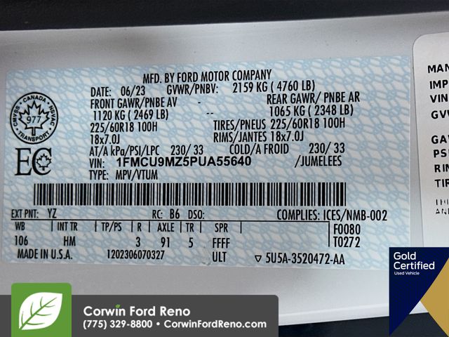 Recent Arrival! This Ford Escape is well equipped and includes these key features and benefits, All Wheel Drive, Heated Seats, Blind-Spot Monitors, Lane Keeping Assist, Touchscreen Controls, Backup Camera, Keyless Access with Push Button Start, Drowsiness Alert, Automatic Headlights, Apple CarPlay, Android Auto, Air Conditioning, Power Liftgate. Available at Corwin Ford Reno located at 11111 South Virginia St.