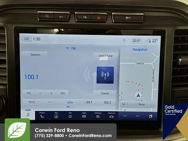 This Ford F-150 is well equipped and includes these key features and benefits, Four Wheel Drive, Adaptive Cruise Control, Heated and Cooled Seats, 360 degree Camera, Heated Seats, Blind-Spot Monitors, Lane Keeping Assist, Navigation System, Touchscreen Controls, Backup Camera, Keyless Access with Push Button Start, Automatic Headlights, Apple CarPlay, Android Auto, Voice Recognition, Bluetooth Hands-Free, Low Miles, FORD CERTIFIED: 12Mo/12K Comprehensive Warranty,7 Yr/100K Powertrain Warranty,, 172-pt inspection, Roadside assistance, trip-interruption services, rental car benefits, Factory Tow Package, Collision Warning System, 2nd Row Heated Seats, ABS brakes, Accent-Color Angular Step Bars, Alloy wheels, Body-Color Front & Rear Bumpers, Box Side Decals, Chrome Single-Tip Exhaust, Class IV Trailer Hitch Receiver, Compass, Dark 2-Bar & 1 Minor Bar Style Grille, Electronic Locking w/3.55 Axle Ratio, Electronic Stability Control, Equipment Group 502A High, Extended Range 36 Gallon Fuel Tank, Ford Co-Pilot360 Assist 2.0, Front dual zone A/C, Heated door mirrors, Heated front seats, Illuminated entry, Integrated Trailer Brake Controller, Lariat Sport Appearance Package, LED Projector w/Dynamic Bending Headlamps, Low tire pressure warning, Navigation system: Connected Navigation, Power Tilt/Telescoping Steering Column w/Memory, Pro Trailer Backup Assist & Pro Trailer Hitch Assist, Rain-Sensing Wipers, Remote keyless entry, Traction control, Trailer Tow Package, Wheels: 20" Chrome-Like PVD, Wireless Charging Pad. Priced below KBB Fair Purchase Price! Available at Corwin Ford Reno located at 11111 South Virginia St.