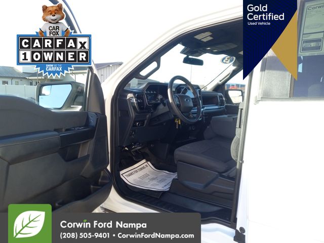 Our Certified, Accident Free, One Owner 2023 Ford F-150 XL Super Cab 4X4 is a powerful workhorse with a premium Oxford White appearance! Motivated by a Twin-TurboCharged 2.7 Liter EcoBoost V6 providing 325hp tethered to a 10 Speed Automatic transmission that's engineered for easy towing and hauling. This Four Wheel Drive truck also rewards you with a multimode performance system to dominate in different conditions, and it returns nearly 24mpg on the highway. Stylish and functional, our F-150 features automatic halogen headlamps, rain-sensing wipers, a power-locking tailgate, running boards, a drop-in bedliner, and an aggressive black grille with matching bumpers and mirror caps.
