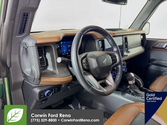 This Ford Bronco is well equipped and includes these key features and benefits, Four Wheel Drive, Adaptive Cruise Control, Heated Seats, Blind-Spot Monitors, Lane Keeping Assist, Navigation System, Touchscreen Controls, Backup Camera, Keyless Access with Push Button Start, Automatic Headlights, Apple CarPlay, Android Auto, Voice Recognition, Bluetooth Hands-Free, Low Miles, FORD CERTIFIED: 12Mo/12K Comprehensive Warranty,7 Yr/100K Powertrain Warranty,, 172-pt inspection, Roadside assistance, trip-interruption services, rental car benefits, Collision Warning System, 360-Degree Camera, Adaptive Cruise Control, Additional Sound Deadening, Carbonized Gray Molded-In-Color Hard Top, Equipment Group 314A High/Lux Package, Evasive Steering Assist, Front Parking Sensors, Front Row Top Panels Storage Bag, Hard Top Sound Deadening Headliner, Heated Steering Wheel, Information on Demand Panel, Navigation system: Connected Navigation, Radio: B&O Sound System by Bang & Olufsen, Rear-Window Defroster & Washer, Sideview Mirrors, Universal Garage Door Opener, Wireless Charging Pad. Available at Corwin Ford Reno located at 11111 South Virginia St.