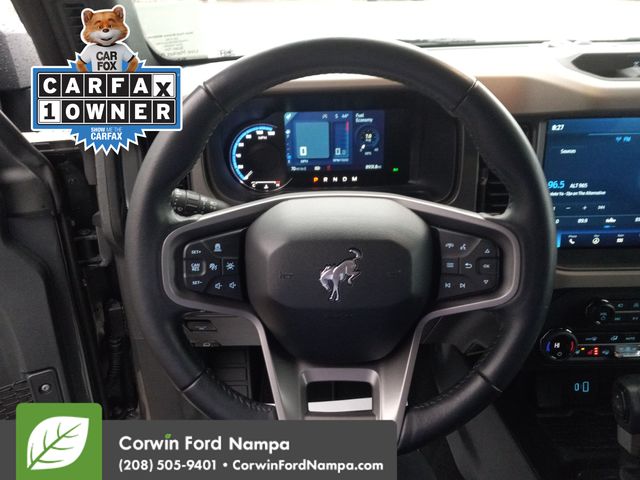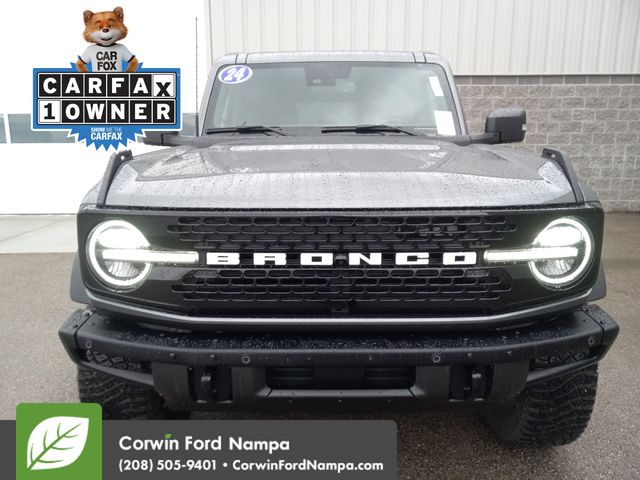 Get into our Certified, Accident Free, One Owner 2024 Ford Bronco Wildtrak 4 Door 4X4 in Carbonized Gray Metallic, and you can go where the wild things are! Powered by a TurboCharged 2.7 Liter EcoBoost V6 offering 330hp to a 10 Speed Automatic transmission for terrific off-road authority. This Four Wheel Drive SUV attacks adventures with a high-clearance HOSS 3.0 suspension, FOX internal by-pass dampers, and a severe-duty steering rack, and it scores nearly 17mpg on the highway. Iconic Bronco style comes into the picture with LED lighting, a removable top and doors, a powder-coated steel front bumper, fog lamps, bash plates, a bold hood graphic, and a swingout tailgate.
