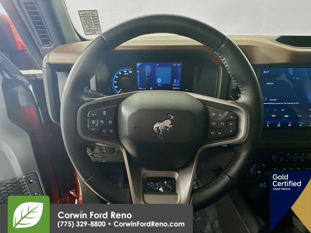 Recent Arrival! This Ford Bronco is well equipped and includes these key features and benefits, Four Wheel Drive, FORD CERTIFIED: 12Mo/12K Comprehensive Warranty,7 Yr/100K Powertrain Warranty,, 172-pt inspection, Roadside assistance, trip-interruption services, rental car benefits, 360-Degree Camera, Adaptive Cruise Control, Additional Sound Deadening, Equipment Group 314A High/Lux Package, Evasive Steering Assist, Front Parking Sensors, Heated Steering Wheel, Information on Demand Panel, Navigation system: Connected Navigation, Radio: B&O Sound System by Bang & Olufsen, Sideview Mirrors, Universal Garage Door Opener, Wireless Charging Pad. CARFAX One-Owner. Priced below KBB Fair Purchase Price! Available at Corwin Ford Reno located at 11111 South Virginia St.
