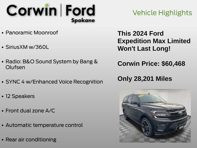 2024 Ford Expedition Max Limited 4WD EcoBoost 3.5L V6 GTDi DOHC 24V Twin Turbocharged Agate Black Metallic Certified.
