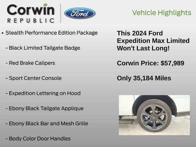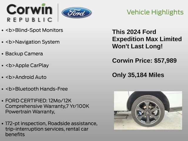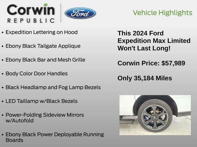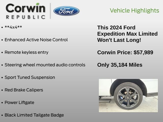 2024 Ford Expedition Max Limited 4WD 10-Speed Automatic EcoBoost 3.5L V6 GTDi DOHC 24V Twin Turbocharged Oxford White