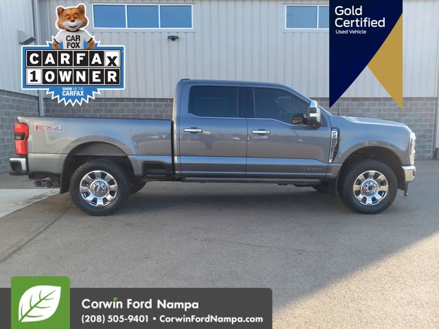 Our Diesel powered Certified, Accident Free, One Owner 2024 Ford F-250 Lariat Crew Cab 4X4 with FX4 Off-Road Pack in Carbonized Gray Metallic is built to take on the demands of your day! Motivated by a TurboCharged 6.7 Liter PowerStroke Diesel V8 offering 475hp and 1050lb-ft of torque to a 10 Speed Automatic transmission. A robust suspension helps this Four Wheel Drive truck make the most of its impressive towing and payload ratings, and it looks fantastic. Our F-250 shows off LED lighting, fog lamps, a bedliner, PowerScope trailer mirrors with built-in spotlights, alloy wheels, chrome bumpers, and a power-lock/remote-release tailgate.