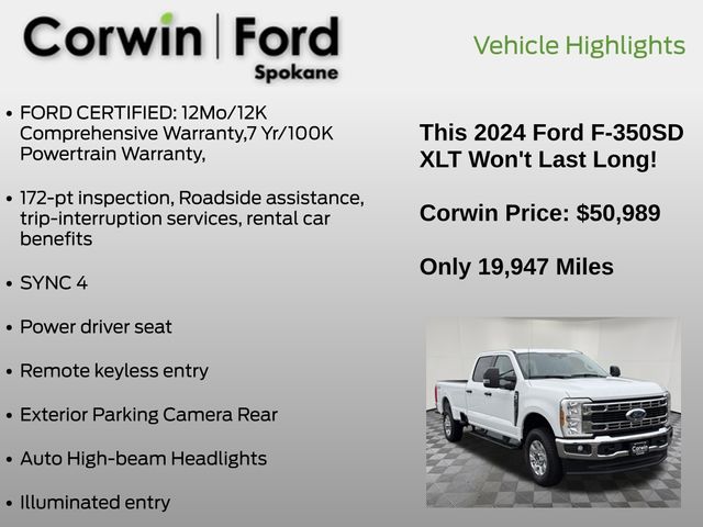 This 2024 Ford F-350SD XLT is a rugged and capable heavy-duty pickup that's ready to take on any job or adventure. With its powerful 7.3L V8 engine, 10-speed automatic transmission, and 4-wheel drive, this truck delivers exceptional performance and versatility.