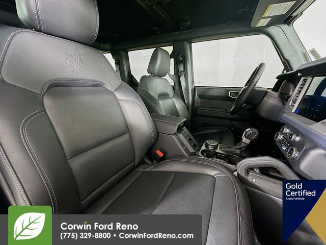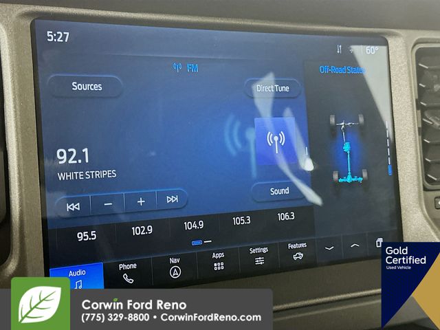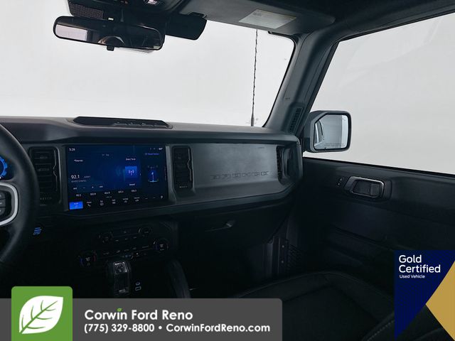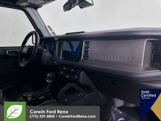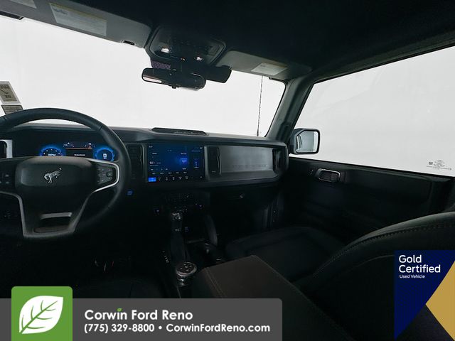 Recent Arrival! This Ford Bronco is well equipped and includes these key features and benefits, Four Wheel Drive, Navigation System, Touchscreen Controls, Backup Camera, Keyless Access with Push Button Start, Apple CarPlay, Android Auto, Voice Recognition, Bluetooth Hands-Free, Low Miles, FORD CERTIFIED: 12Mo/12K Comprehensive Warranty,7 Yr/100K Powertrain Warranty,, 172-pt inspection, Roadside assistance, trip-interruption services, rental car benefits, Collision Warning System, 2-Door Intelligent Access w/Lock/Unlock, 4.46 Final Drive Ratio w/Rear Locking Differential, Ambient Footwell Lighting, Auxiliary Switches, Black Diamond Package, Connected Navigation, Dr & Pass Illuminated Sliding Visor Vanity Mirrors, Dual Smart Charging USB Ports, Dual-Zone Electronic Automatic Temperature Control, Equipment Group 222A Mid Package, Front Row Heated Seats, LED Fog Lamps, Navigation System, Powder Coated Steel Front & Rear Bumpers, Power Outlet - Back Side of Center Floor Console, Rear Parking Sensors, Rock Rails, Washout Capable Rubberized Flooring, Wheels: 17" Black High Gloss Painted Aluminum. CARFAX One-Owner. Available at Corwin Ford Reno located at 11111 South Virginia St.