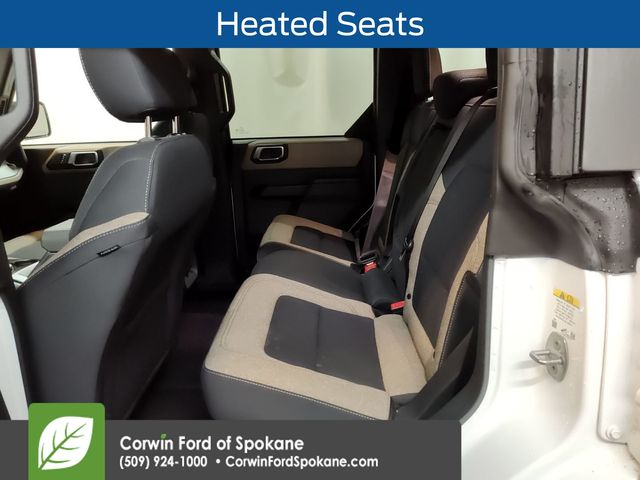 This Bronco is well-equipped with the Equipment Group 222A Mid Package, which adds a host of premium features like Rear Parking Sensors, Power Outlet - Back Side of Center Floor Console, Dual Smart Charging USB Ports, Front Row Heated Seats, and more. The Connected Navigation system with live traffic and predictive destinations is also included, making it easy to find your way and stay connected on the road.