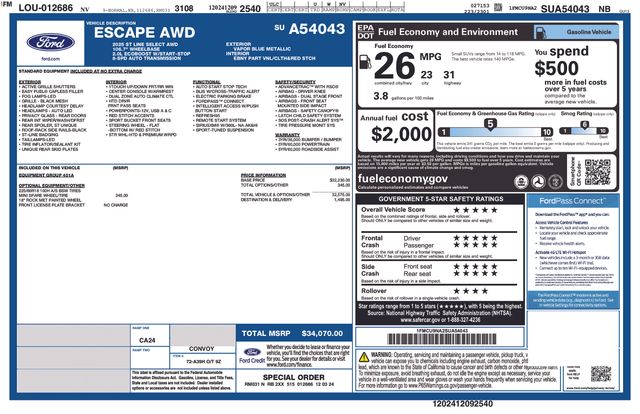 2025 Ford Escape ST-Line Select AWD EcoBoost 2.0L I4 GTDi DOHC Turbocharged VCT Vapor Blue Metallic Certified.