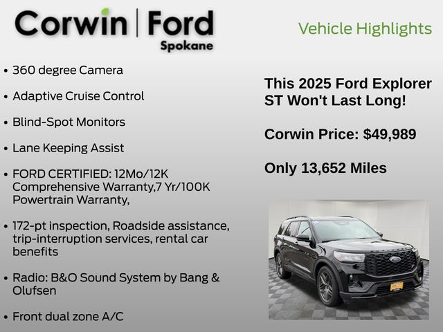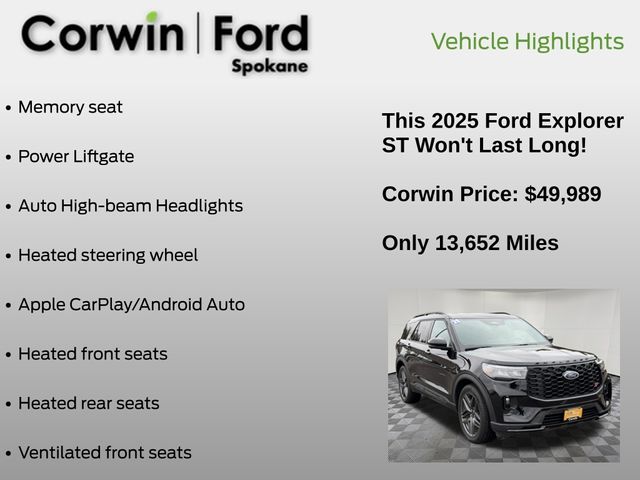 Discover the perfect balance of performance, technology, and style in this meticulously maintained 2025 Ford Explorer ST. Experience the difference with a test drive today and let us show you why this SUV is the perfect fit for your lifestyle.