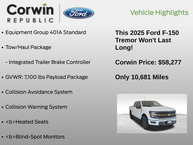 2025 Ford F-150 Tremor 4WD 10-Speed Automatic 3.5L V6 EcoBoost Space White Metallic