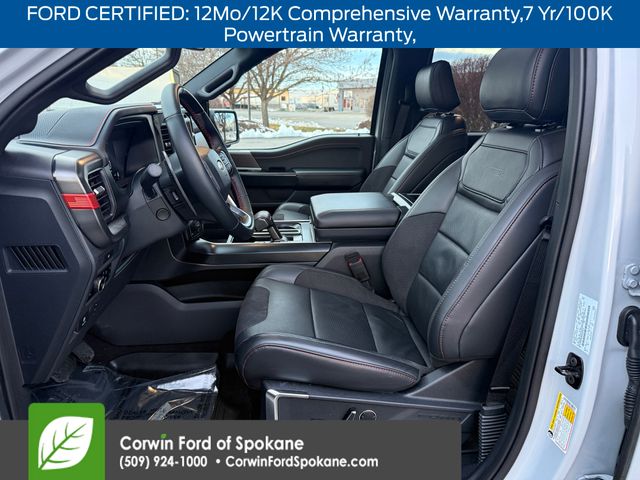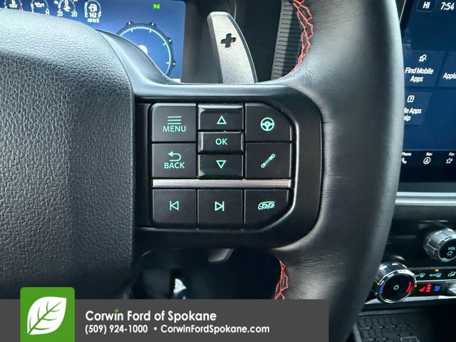 Heated and ventilated leather power front seats, a heated leather steering wheel, dual-zone automatic climate control, and power-adjustable pedals add a touch of comfortable class to our Raptor cabin. Commanding technology awaits with a SYNC-powered infotainment system bundling a 12-inch touchscreen, a 12-inch productivity screen, B&O Unleashed audio, connected navigation compatibility, Apple CarPlay®, Android Auto®, Bluetooth®, and WiFi compatibility.