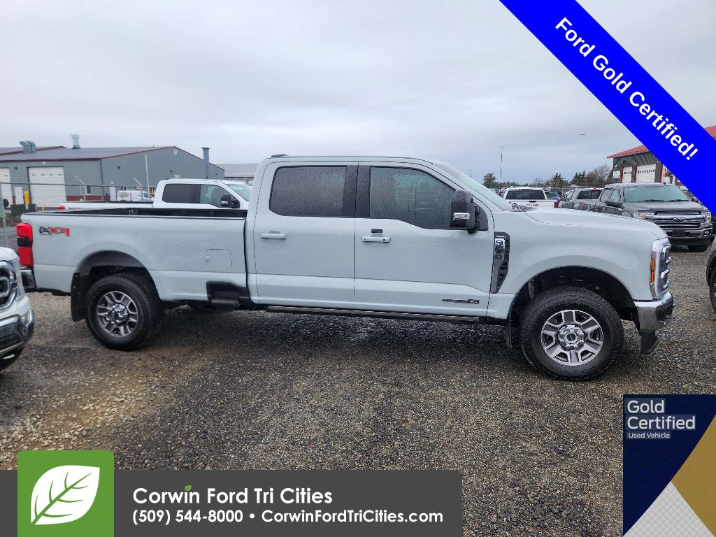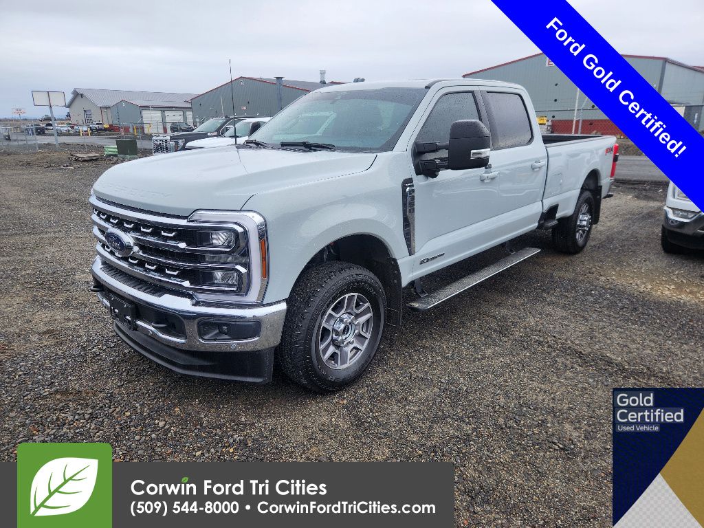 Command our diesel-driven, Accident Free, Certified Pre-Owned 2025 Ford F-350 Super Duty Lariat Crew Cab 4X4 with the Ultimate Package and conquer the tough jobs in Avalanche! Motivated by a TurboCharged 6.7 Liter PowerStroke Diesel V8 serving up 475hp and 1050lb-ft of torque to a 10 Speed Automatic transmission. This Four Wheel Drive truck complements that muscle with a rugged suspension for an easy ride. Equipped for dealing with the daily grind, our bold Ford F-350 boasts the Ultimate Pack's power running boards, power sliding rear window, tailgate step, LED lighting, fog lamps, PowerScope trailer mirrors with built-in spotlights, chrome bumpers, a power-lock/remote-release tailgate, and alloy wheels. A spray-on bedliner has also been applied.