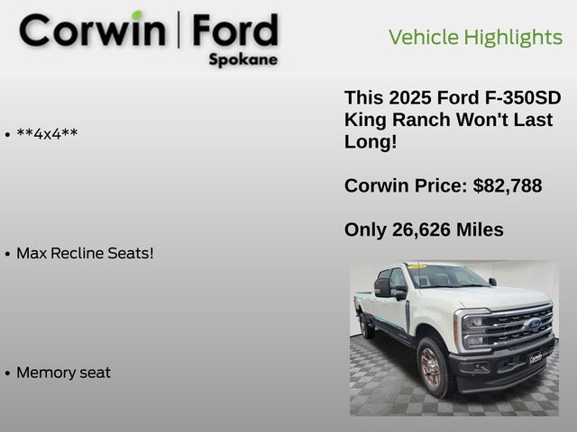 2025 Ford F-350SD King Ranch 4WD Power Stroke 6.7L V8 DI 32V OHV Turbodiesel Star White Metallic Tri-Coat Certified.