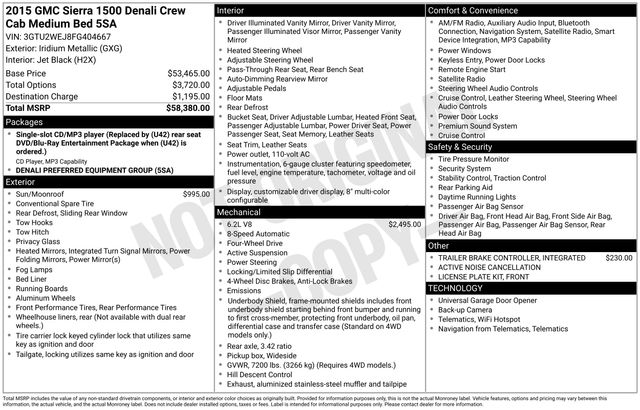 2015 GMC Sierra 1500 Denali 4WD EcoTec3 6.2L V8 Iridium Metallic Certified.