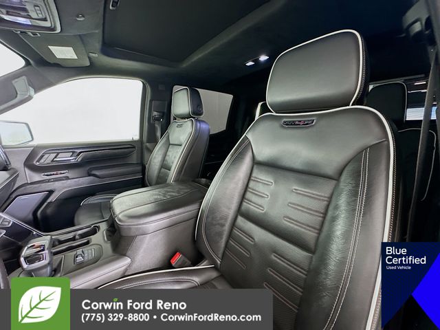 This GMC Sierra 1500 is well equipped and includes these key features and benefits, Four Wheel Drive, Heated and Cooled Seats, Moonroof, Heated Seats, Lane Keeping Assist, Navigation System, Touchscreen Controls, Heads-Up Display, Backup Camera, Keyless Access with Push Button Start, Automatic Headlights, Apple CarPlay, Android Auto, Voice Recognition, Bluetooth Hands-Free, Factory Tow Package, Collision Warning System, 120-Volt Instrument Panel Power Outlet, 2 Charge/Data USB Ports Inside Center Console, 2 Type-C Charge-Only Rear USB Ports, 2 USB Ports, Bed View Camera, Bose Premium Series w/12-Speaker System, Color-Keyed Carpeting Floor Covering, Compass, Deep-Tinted Glass, Driver-Selectable Full-Locking Front Differential, Driver-Selectable Full-Locking Rear Differential, Electric Rear-Window Defogger, Electrical Steering Column Lock, Floor-Mounted Center Console, Front Prem Floor Liners w/Removable Carpet Insert, Front Rainsensing Wipers, Gloss Black Header w/Drk Nickel Grille Insert Bars, GMC Connected Access Capable, HD Surround Vision, Heated 2nd Row Outboard Seats, Heated Driver & Front Outboard Passenger Seating, Heavy-Duty Air Filter, Hill Descent Control, Hitch Guidance, Hitch Guidance w/Hitch View, In-Vehicle Trailering App, Integrated Trailer Brake Controller, Keyless Open & Start, LED Cargo Area Lighting, Multicolor 15" Diagonal Head-Up Display, MultiPro Audio System by Kicker (LPO), Navigation System, OnStar & GMC Connected Services Capable, Perimeter Lighting, Power Door Locks, Power Front Passenger Windows w/Express Up/Down, Power Front Windows w/Driver Express Up/Down, Power Rake & Telescoping Steering Column, Power Rear Windows w/Express Down, Power Sliding Rear Window w/Rear Defogger, Power Sunroof, Preferred Equipment Group 4SG, Push Button Start, Rear Cross Traffic Braking, Rear Pedestrian Detection, Rear Wheelhouse Liners, Remote Vehicle Starter System, SiriusXM w/360L, Spray-On Pickup Bed Liner w/AT4X Logo, Steering Wheel Audio Controls, Theft Deterrent System (Unauthorized Entry), Trailer Camera Provisions, Trailer Side Blind Zone Alert, Trailer Tire Pressure Monitor System, Trailering Package, Ultrasonic Front & Rear Park Assist, Universal Home Remote, Ventilated Driver & Front Passenger Seats, Wi-Fi Hotspot Capable, Wireless Charging, Wireless Phone Projection. Priced below KBB Fair Purchase Price! Available at Corwin Ford Reno located at 11111 South Virginia St.