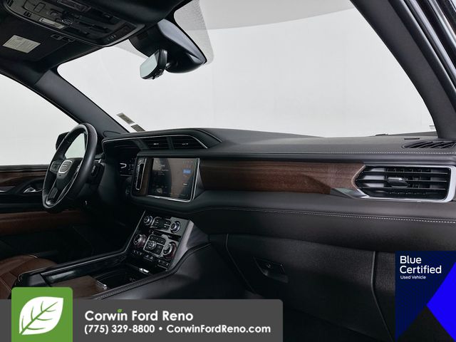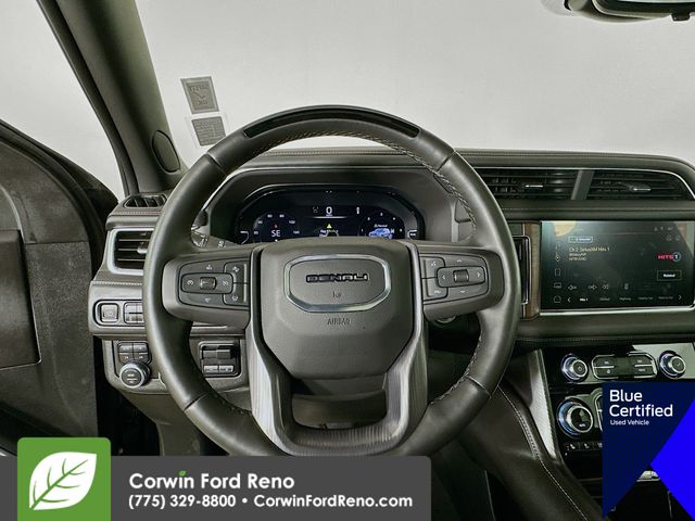 This GMC Yukon XL is well equipped and includes these key features and benefits, Four Wheel Drive, Adaptive Cruise Control, Heated and Cooled Seats, Panoramic Moonroof, 360 degree Camera, Blind-Spot Monitors, Lane Keeping Assist, Navigation System, Touchscreen Controls, Heads-Up Display, Backup Camera, Keyless Access with Push Button Start, Drowsiness Alert, Automatic Headlights, Apple CarPlay, Android Auto, Low Miles, Advanced Security Package, Advanced Technology Package, Air Ride Adaptive Suspension, Electronic Limited Slip Differential (eLSD), Enhanced Automatic Parking Assist, Extra Capacity Cooling System, Inside Rearview Auto-Dimming Rear Camera Mirror, Max Trailering Package, Navigation System, Premium Capability Package w/Active Response 4WD, Rear Camera Mirror Washer, Reverse Automatic Braking. Available at Corwin Ford Reno located at 11111 South Virginia St.