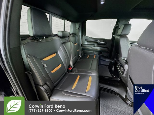 This GMC Sierra 1500 is well equipped and includes these key features and benefits, Four Wheel Drive, Adaptive Cruise Control, Heated and Cooled Seats, Heated Seats, Blind-Spot Monitors, Lane Keeping Assist, Touchscreen Controls, Heads-Up Display, Backup Camera, Keyless Access with Push Button Start, Automatic Headlights, Apple CarPlay, Android Auto, Voice Recognition, Bluetooth Hands-Free, Factory Tow Package, Collision Warning System, 120-Volt Interior Power Outlet, 2 Charge/Data USB Ports Inside Center Console, 2 Type-C Charge-Only Rear USB Ports, 2 USB Ports, 220 Amp Alternator, AT4 Preferred Package, Auto-Locking Rear Differential, Bed View Camera, Black Chrome Header & Grille Insert Bars, Color-Keyed Carpeting Floor Covering, Deep-Tinted Glass, Electric Rear-Window Defogger, Floor-Mounted Center Console, Front Prem Floor Liners w/Removable Carpet Insert, Front Rain-Sensing Wipers, GMC Connected Access Capable, HD Surround Vision, Heated 2nd Row Outboard Seats, Heated Driver & Front Outboard Passenger Seating, Heavy-Duty Air Filter, Hill Descent Control, Hitch View, In-Vehicle Trailering System App, Integrated Trailer Brake Controller, Keyless Open & Start, LED Cargo Area Lighting, Multicolor 15" Diagonal Head-Up Display, Navigation System, OnStar & GMC Connected Services Capable, Perimeter Lighting, Power Door Locks, Power Front Passenger Windows w/Express Up/Down, Power Front Windows w/Driver Express Up/Down, Power Rake & Telescoping Steering Column, Power Rear Windows w/Express Down, Power Sliding Rear Window w/Rear Defogger, Preferred Equipment Group 4SB, Premium Bose 7-Speaker Sound System, Push Button Start, Rear Camera Mirror, Rear Cross Traffic Braking, Rear Pedestrian Detection, Rear Wheelhouse Liners, Red Recovery Hooks, Remote Vehicle Starter System, SiriusXM w/360L, Spray-On Pickup Bedliner w/AT4 Logo, Steering Wheel Audio Controls, Technology Package, Theft Deterrent System (Unauthorized Entry), Trailer Camera Provisions, Trailer Side Blind Zone Alert, Trailering Package, Ultrasonic Front & Rear Park Assist, Universal Home Remote, Ventilated Driver & Front Passenger Seats, Wi-Fi Hotspot Capable, Wireless Charging. Priced below KBB Fair Purchase Price! Available at Corwin Ford Reno located at 11111 South Virginia St.