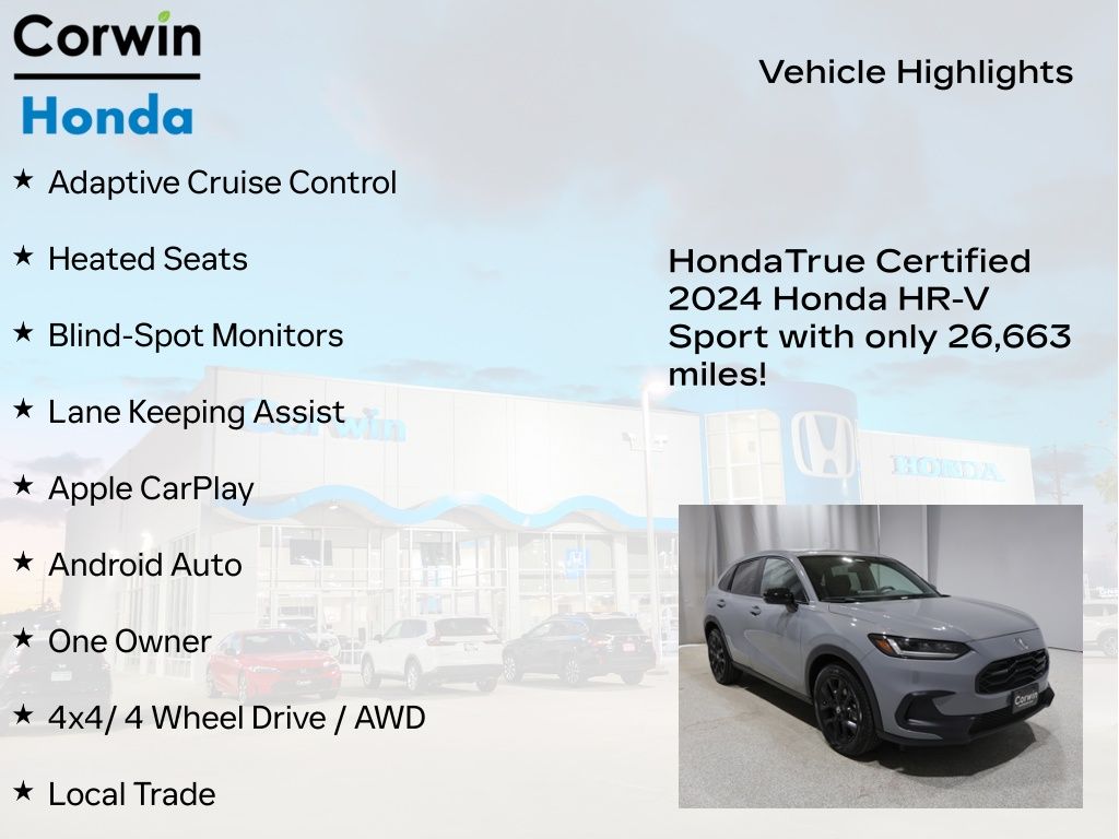 Discover the perfect blend of style, technology, and capability with this exceptional 2024 Honda HR-V Sport. This versatile crossover SUV is a true standout, offering a dynamic driving experience and a wealth of advanced features to enhance your everyday adventures.