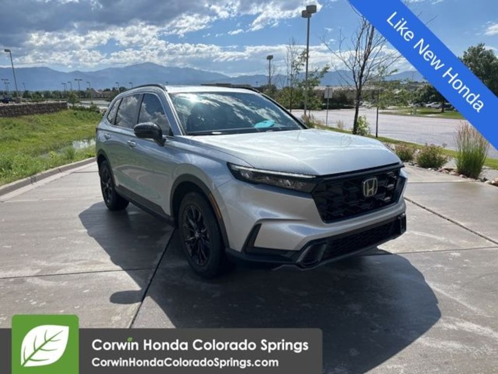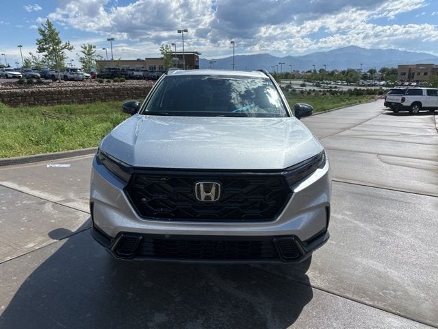 2025 Solar Silver Metallic Honda CR-V Hybrid Sport Certified.