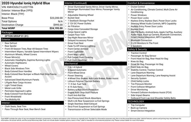 2020 Hyundai Ioniq Hybrid Blue FWD I4 Intense Blue Certified.