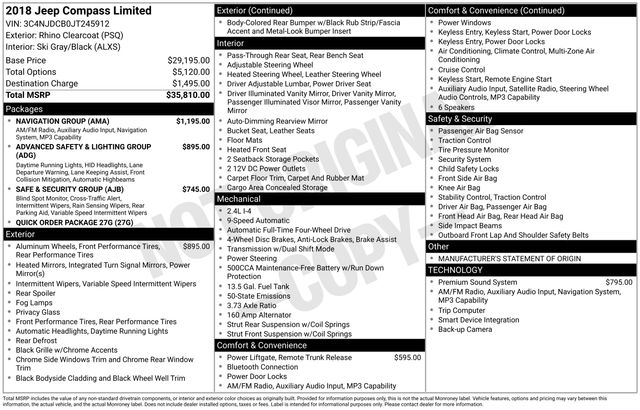 2018 Jeep Compass Limited 4WD 2.4L I4 Rhino Clearcoat