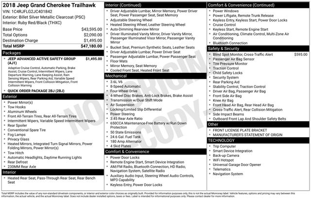 2018 Jeep Grand Cherokee Trailhawk 4WD 3.6L V6 24V VVT Billet Silver Metallic Clearcoat Certified.