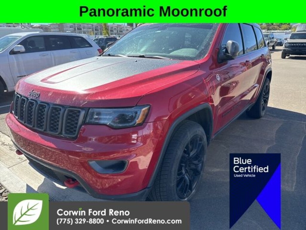 Recent Arrival! This Jeep Grand Cherokee is well equipped and includes these key features and benefits, Four Wheel Drive, Heated and Cooled Seats, Panoramic Moonroof, Heated Seats, Blind-Spot Monitors, Navigation System, Touchscreen Controls, Backup Camera, Keyless Access with Push Button Start, Automatic Headlights, Apple CarPlay, Android Auto, Voice Recognition, Bluetooth Hands-Free, Auto High Beam Headlamp Control, Bi-Xenon High-Intensity Discharge Headlamps, Cargo Compartment Cover, Dual-Pane Panoramic Sunroof, Front LED Fog Lamps, LED Daytime Running Headlamps, Navigation System, Power Tilt/Telescope Steering Column, Quick Order Package 2BJ, Rain Sensitive Windshield Wipers, Trailhawk Leather Trim Seats w/Perforation, Trailhawk Luxury Group. CARFAX One-Owner. Available at Corwin Ford Reno located at 11111 South Virginia St.