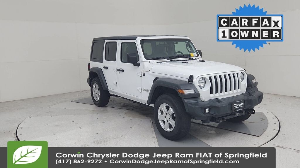 Corwin Chrysler Dodge Jeep Ram Fiat is pleased to offer this. Jeep Wrangler that is well equipped and includes these key features and benefits, Touchscreen Controls, Backup Camera, Automatic Headlights, Voice Recognition, Bluetooth Hands-Free, 4x4 / 4 Wheel Drive / AWD, iPhone Integration, Automatic Headlamps, Deep Tint Sunscreen Windows, Front 1-Touch Down Power Windows, Leather Wrapped Steering Wheel, Power Heated Mirrors, Quick Order Package 24S Sport S, Remote Keyless Entry, Security Alarm, Speed Sensitive Power Locks, Sun Visors w/Illuminated Vanity Mirrors, Wheels: 17" x 7.5" Tech Silver Aluminum.