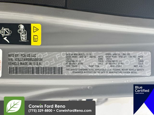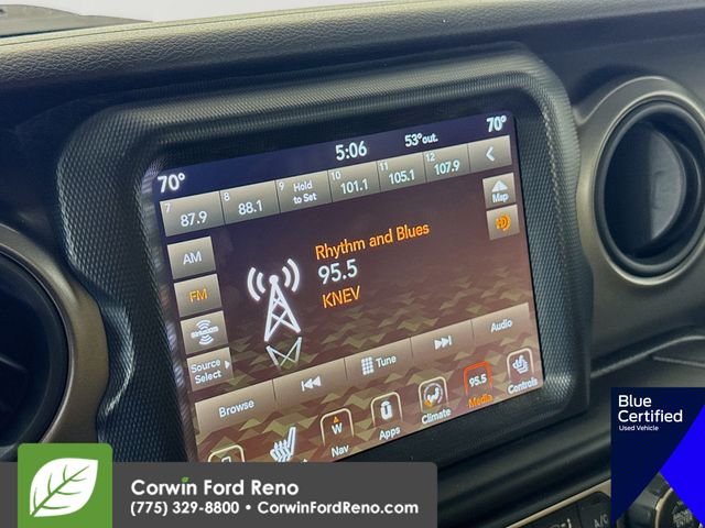 Recent Arrival! This Jeep Gladiator is well equipped and includes these key features and benefits, Four Wheel Drive, Blind-Spot Monitors, Touchscreen Controls, Backup Camera, Keyless Access with Push Button Start, Automatic Headlights, Apple CarPlay, Android Auto, 1-Year SiriusXM Guardian Trial, 115V Auxiliary Power Outlet, 220 Amp Alternator, 240 Amp Alternator, 400W Inverter, 5-Year SiriusXM Traffic Service, 5-Year SiriusXM Travel Link Service, 7.0" Touch Screen Display, 8.4" Radio & Premium Audio Group, 8.4" Touchscreen Display, Air Conditioning w/Auto Temperature Control, Alpine Premium Audio System, Alpine Premium Audio System (DISC), Apple CarPlay, Auto-Dimming Rear-View Mirror, Automatic Headlamps, Class IV Hitch Receiver, Cluster 7.0" TFT Color Display, Cold Weather Group, Console Bin Task Light, Convenience Group, Emergency/Assistance Call, For Details, Visit DriveUconnect.com, Google Android Auto, GPS Navigation, HD Radio, Heated Front Seats, Heated Steering Wheel, Heavy-Duty Engine Cooling, Integrated Center Stack Radio, Integrated Voice Command w/Bluetooth, Media Hub w/2 Charge Only USBs, Off-Road Info Pages, Radio: Uconnect 4 w/7" Display, Radio: Uconnect 4C Nav w/8.4" Display, SiriusXM Satellite Radio, SiriusXM Traffic Plus, SiriusXM Travel Link, Technology Group, Trailer Hitch Zoom, Trailer Tow Package, Universal Garage Door Opener, USB Host Flip. Available at Corwin Ford Reno located at 11111 South Virginia St.