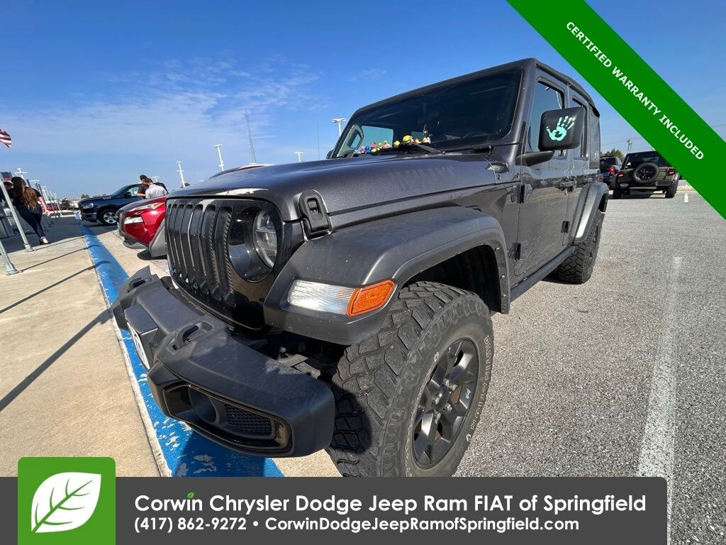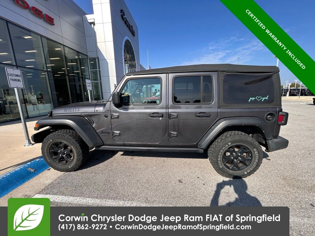 Corwin Chrysler Dodge Jeep Ram Fiat is pleased to offer this. New Price! Jeep Wrangler that is well equipped and includes these key features and benefits, Heated Seats, Touchscreen Controls, Keyless Access with Push Button Start, Apple CarPlay, Android Auto, Voice Recognition, Bluetooth Hands-Free, 4x4 / 4 Wheel Drive / AWD, 4-Wheel Drive Swing Gate Decal, 7.0" Touchscreen Display, Air Conditioning w/Auto Temperature Control, Air Filtering, Anti-Spin Differential Rear Axle, Apple CarPlay, Automatic Headlamps, Black Grille, Black Trail Rated Badge, Cluster 7.0" TFT Color Display, Cold Weather Group, Convenience Group, Deep Tint Sunscreen Windows, Front 1-Touch Down Power Windows, Front LED Fog Lamps, Google Android Auto, GPS Antenna Input, Heated Front Seats, Heated Steering Wheel, Integrated Center Stack Radio, Leather Wrapped Steering Wheel, LED Headlamp & Fog Lamp Group, LED Premium Reflector Headlamps, Matte Black Jeep Badge, Mold In Color Bumper w/Gloss Black, MOPAR All-Weather Floor Mats, Power Heated Mirrors, Quick Order Package 22W Willys, Radio: Uconnect 4 w/7" Display, Remote Keyless Entry, Security Alarm, SiriusXM Satellite Radio, Speed Sensitive Power Locks, Sun Visors w/Illuminated Vanity Mirrors, Technology Group, Universal Garage Door Opener, USB Host Flip, Willys, Willys Hood Decal, Wrangler Decal.