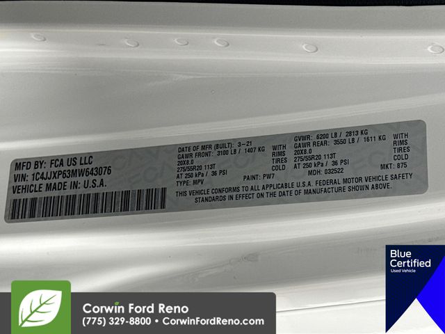 Recent Arrival! This Jeep Wrangler is well equipped and includes these key features and benefits, Four Wheel Drive, Adaptive Cruise Control, Heated Seats, Blind-Spot Monitors, Lane Keeping Assist, Touchscreen Controls, Backup Camera, Keyless Access with Push Button Start, Drowsiness Alert, Automatic Headlights, Apple CarPlay, Android Auto, 7 & 4 Pin Wiring Harness, 700 Amp Maintenance Free Battery, Adaptive Cruise Control w/Stop, Advanced Brake Assist, Advanced Safety Group, Auto High Beam Headlamp Control, Auxiliary Switches, Class II Receiver Hitch, Cold Weather Group, Full Speed Forward Collision Warning Plus, Fully automatic headlights, Heated Front Seats, Heated Steering Wheel, Navigation System, Remote Start System, Trailer Tow & HD Electrical Group. CARFAX One-Owner. Priced below KBB Fair Purchase Price! Available at Corwin Ford Reno located at 11111 South Virginia St.
