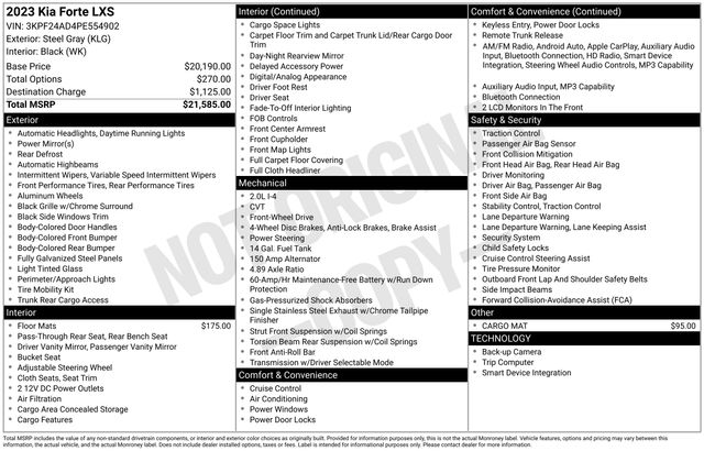 2023 Kia Forte LXS FWD 2.0L I4 MPI Steel Gray Certified.