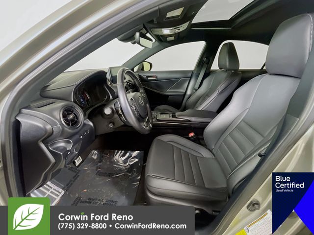 This Lexus IS is well equipped and includes these key features and benefits, All Wheel Drive, Adaptive Cruise Control, Heated and Cooled Seats, Moonroof, Active Parking Assist, Heated Seats, Blind-Spot Monitors, Navigation System, Touchscreen Controls, Backup Camera, Keyless Access with Push Button Start, Automatic Headlights, Apple CarPlay, Android Auto, Voice Recognition, Bluetooth Hands-Free, Low Miles, Collision Warning System, Lexus Memory System for Driver's Seat, Memory Package, Moonroof, Navigation Package, Navigation System, Outside Mirrors w/Auto Tilt-Down in Reverse, Power Tilt & Telescoping Steering Wheel. Priced below KBB Fair Purchase Price! Available at Corwin Ford Reno located at 11111 South Virginia St.