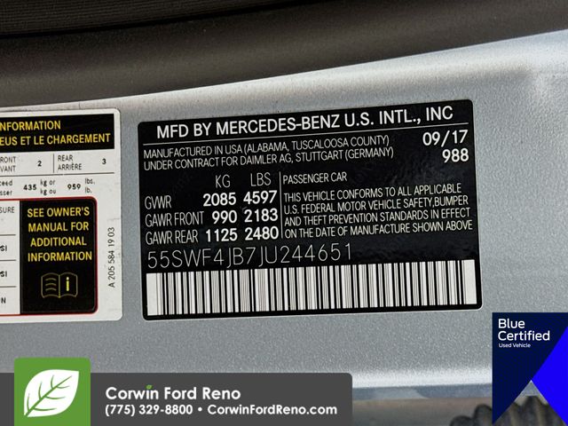 Recent Arrival! This Mercedes-Benz C-Class is well equipped and includes these key features and benefits, Moonroof, 360 degree Camera, Heated Seats, Lane Keeping Assist, Adaptive Headlights, Touchscreen Controls, Backup Camera, Keyless Access with Push Button Start, Drowsiness Alert, Automatic Headlights, Apple CarPlay, Android Auto, Brake assist. CARFAX One-Owner. Priced below KBB Fair Purchase Price! Available at Corwin Ford Reno located at 11111 South Virginia St.