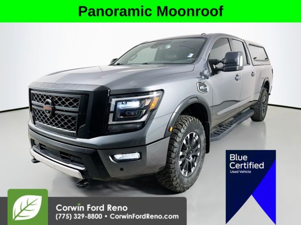 Recent Arrival! This Nissan Titan XD is well equipped and includes these key features and benefits, Four Wheel Drive, Adaptive Cruise Control, Panoramic Moonroof, 360 degree Camera, Heated Seats, Navigation System, Touchscreen Controls, Backup Camera, Keyless Access with Push Button Start, Automatic Headlights, Apple CarPlay, Android Auto, Voice Recognition, Bluetooth Hands-Free, Factory Tow Package, Collision Warning System, 4-Way Power Assist Seat, Adventure Medic Kit, All Season Floor Mats, Dual Panel Panoramic Moonroof w/Tilt & Slide, Engine Remote Start, Exterior Marker Lights, Heated Driver & Passenger Front Seats, Heated Power Tilt/Telescopic Steering Wheel, Heated Rear Seats, Intelligent Around View Monitor (I-AVM), Interior Door Scuff Protection, Leather Seat Trim w/Contrasting Stitch, Memory Driver Seat w/Auto Entry/Exit Feature, Memory Outside Mirrors, Navigation system: NissanConnect Navigation, Off Road Protection Package, Off-Road Adventure Kit, Premium Package, PRO-4X Convenience Package, TITAN Box, Ventilated Driver & Front Passenger Seats. Priced below KBB Fair Purchase Price! Available at Corwin Ford Reno located at 11111 South Virginia St.