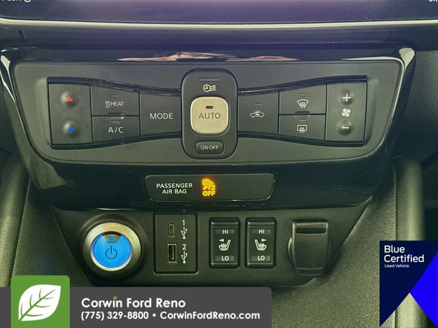 Recent Arrival! This Nissan Leaf is well equipped and includes these key features and benefits, Adaptive Cruise Control, Heated Seats, Blind-Spot Monitors, Lane Keeping Assist, Touchscreen Controls, Backup Camera, Keyless Access with Push Button Start, Automatic Headlights, Apple CarPlay, Android Auto, Navigation system: NissanConnect EV w/Navigation & Services. Available at Corwin Ford Reno located at 11111 South Virginia St.