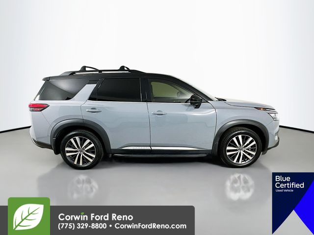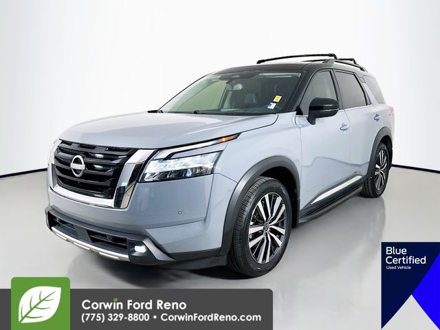 2022 Nissan Pathfinder Platinum 4WD V6 Solid Gray/Super Black Certified.