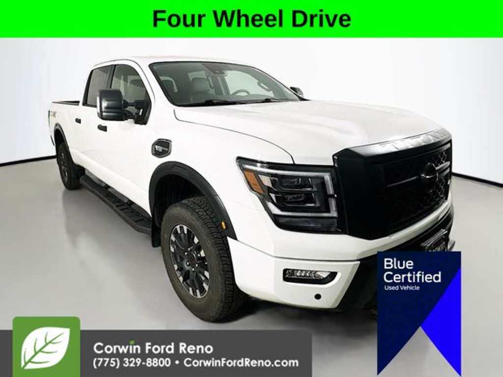 Recent Arrival! This Nissan Titan XD is well equipped and includes these key features and benefits, Four Wheel Drive, 360 degree Camera, Blind-Spot Monitors, Lane Keeping Assist, Navigation System, Touchscreen Controls, Backup Camera, Drowsiness Alert, Automatic Headlights, Apple CarPlay, Android Auto, Low Miles, 12 Speakers, Auto High-beam Headlights, Blind Spot Warning, Brake assist, Delay-off headlights, Electronic Stability Control, Front fog lights, Fully automatic headlights, Navigation system: NissanConnect with Navigation and Services, Off Road Protection Package (K94), PRO-4X Mud Flaps, PRO-4X Rugged Step Boards, Speed control. CARFAX One-Owner. Priced below KBB Fair Purchase Price! Available at Corwin Ford Reno located at 11111 South Virginia St.