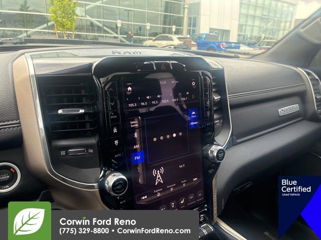 Recent Arrival! This Ram 1500 is well equipped and includes these key features and benefits, Four Wheel Drive, Panoramic Moonroof, Heated Seats, Blind-Spot Monitors, Navigation System, Touchscreen Controls, Backup Camera, Keyless Access with Push Button Start, Automatic Headlights, Apple CarPlay, Android Auto, Voice Recognition, Bluetooth Hands-Free, Factory Tow Package, Auto High Beam Headlamp Control, Black Interior Accents, Blind Spot & Cross Path Detection, Body Color Door Handles, Body Color Front Bumper, Body Color Rear Bumper w/Step Pads, Foam Bottle Insert (Door Trim Panel), Grille B/Color Outline 3 Texture 4, harman/kardon 19 Speaker Premium Sound, Heated Second Row Seats, Laramie Level 2 Equipment Group, Leather Trimmed Bucket Seats, ParkSense Front/Rear Park Assist w/Stop, Power Heated Fold-Away Mirrors, Quick Order Package 25H Laramie, Radio: Uconnect 4C Nav w/8.4" Display, Rain Sensitive Windshield Wipers, Rear 60/40 Folding Split Recline Seat, Rear Underseat Compartment Storage, Remote Tailgate Release, Single Disc Remote CD Player, Sport Appearance Package, Sport Performance Hood, Tailgate Ajar Warning Lamp, Wheels: 20" x 9" Premium Painted w/Inserts, Wireless Charging Pad. Available at Corwin Ford Reno located at 11111 South Virginia St.