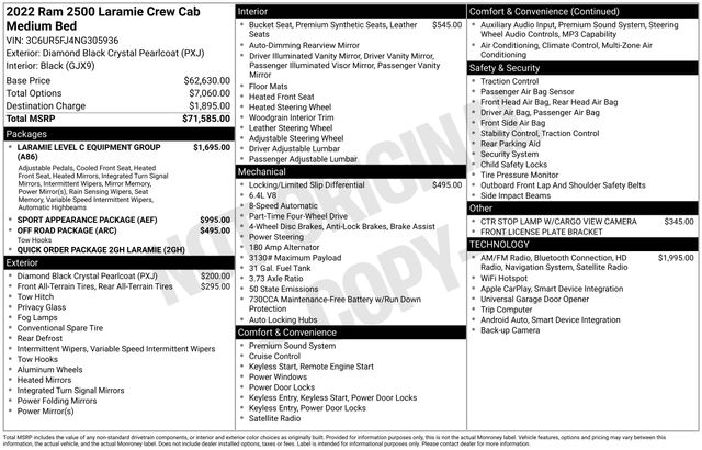 2022 Ram 2500 Laramie 4WD 6.4L V8 Diamond Black Crystal Pearlcoat Certified.